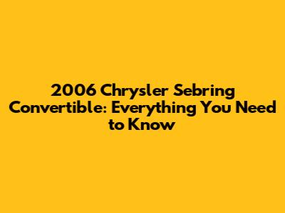 To keep your 2006 Chrysler Sebring Convertible running smoothly, here are some essential maintenance tips: Adhering to these tips can significantly extend the life of your car and prevent costly repairs down the road.