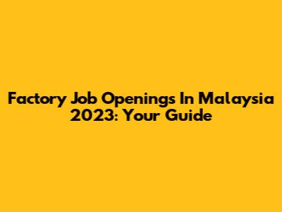 Factory Job Openings In Malaysia 2023: Your Guide