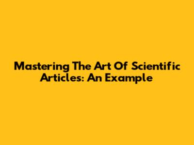 Mastering The Art Of Scientific Articles: An Example