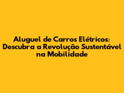 O Futuro da Mobilidade: Por Que o Aluguel de Carros Elétricos é a Escolha Certa