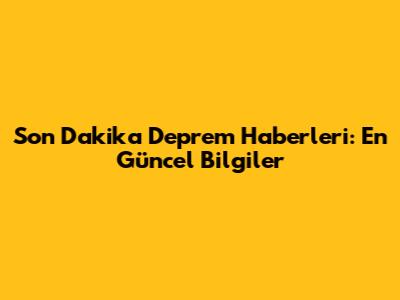 Son Dakika Deprem Haberleri: En Güncel Bilgiler