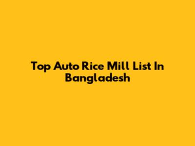 Top Auto Rice Mill List In Bangladesh