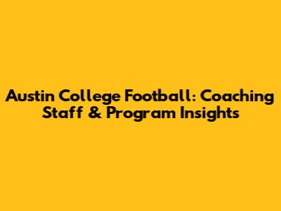 Austin College Football: Coaching Staff & Program Insights