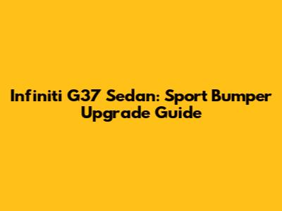 Infiniti G37 Sedan: Sport Bumper Upgrade Guide