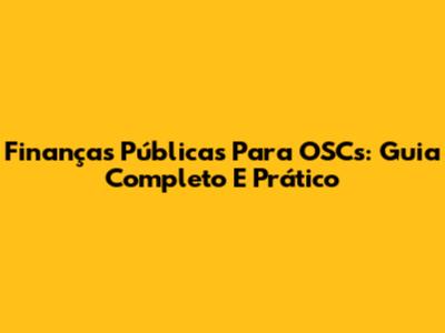 Finanças Públicas Para OSCs: Guia Completo E Prático