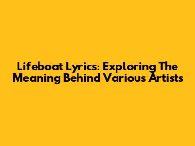 Lifeboat Lyrics: Exploring The Meaning Behind Various Artists