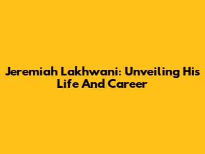 Jeremiah Lakhwani: Unveiling His Life And Career