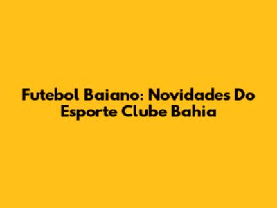 Futebol Baiano: Novidades Do Esporte Clube Bahia