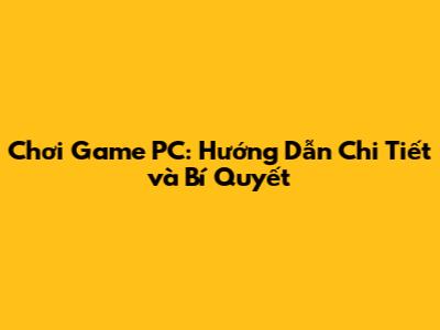 Bí Quyết và Mẹo Chơi Game PC Hiệu Quả