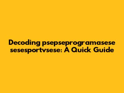 Alright, guys, let's dive straight into decoding this rather cryptic phrase: 'psepseprogramasese sesesportvsese.' Now, I know what you're thinking – what on earth does that even mean? Well, sometimes, in the vast world of digital content, we stumble upon these quirky, seemingly nonsensical strings of characters. Often, they arise from typos, coding errors, or even deliberate attempts to obfuscate or create something unique. But fear not! We're going to break it down and explore the possible origins and interpretations.