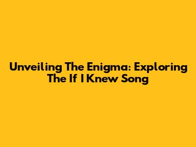 Unveiling The Enigma: Exploring The 'If I Knew' Song