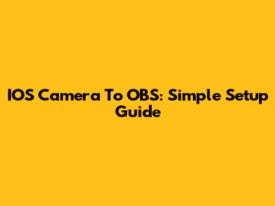 IOS Camera To OBS: Simple Setup Guide