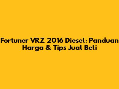 Fortuner VRZ 2016 Diesel: Panduan Harga & Tips Jual Beli