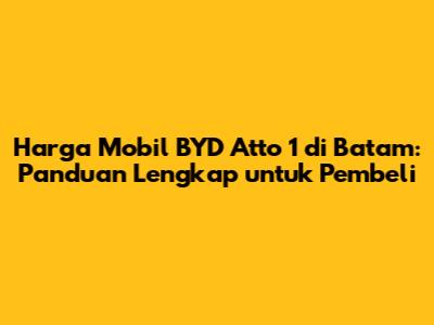 Harga mobil BYD Atto 1 di Batam menjadi topik hangat bagi para calon pembeli mobil listrik di kota industri ini. Guys, kalau kalian lagi cari informasi terkini seputar harga, spesifikasi, dan keunggulan BYD Atto 1, kalian datang ke tempat yang tepat nih! Artikel ini akan mengupas tuntas semua yang perlu kalian ketahui sebelum memutuskan untuk membeli mobil listrik impian kalian di Batam.