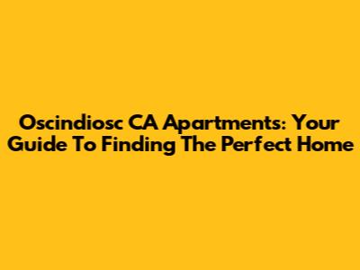 Oscindiosc CA Apartments: Your Guide To Finding The Perfect Home