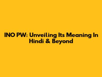 INO PW: Unveiling Its Meaning In Hindi & Beyond