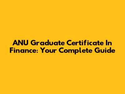 ANU Graduate Certificate In Finance: Your Complete Guide