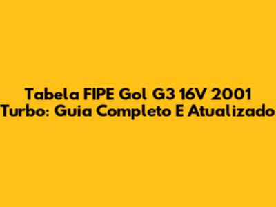 Tabela FIPE Gol G3 16V 2001 Turbo: Guia Completo E Atualizado