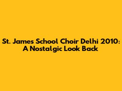 St. James School Choir Delhi 2010: A Nostalgic Look Back