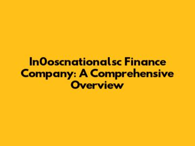 In0oscnationalsc Finance Company: A Comprehensive Overview