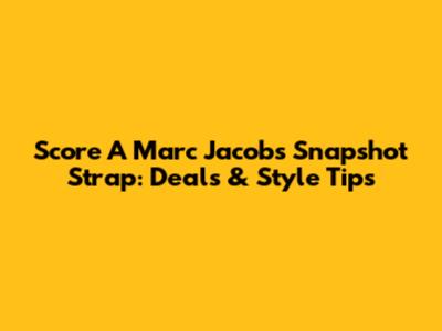 Score A Marc Jacobs Snapshot Strap: Deals & Style Tips