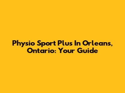 Physio Sport Plus In Orleans, Ontario: Your Guide