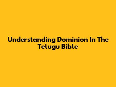 Understanding 'Dominion' In The Telugu Bible