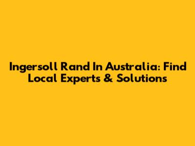Ingersoll Rand In Australia: Find Local Experts & Solutions