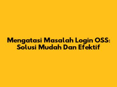 Mengatasi Masalah Login OSS: Solusi Mudah Dan Efektif