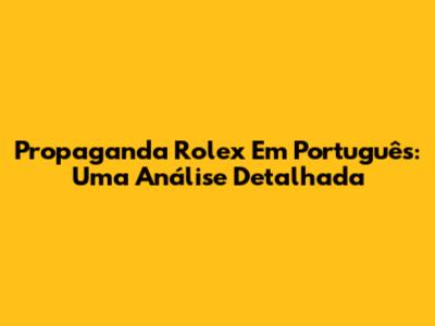 Propaganda Rolex Em Português: Uma Análise Detalhada