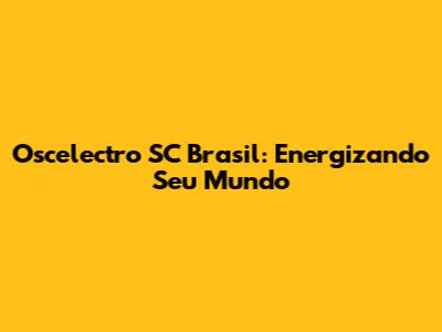 Oscelectro SC Brasil: Energizando Seu Mundo