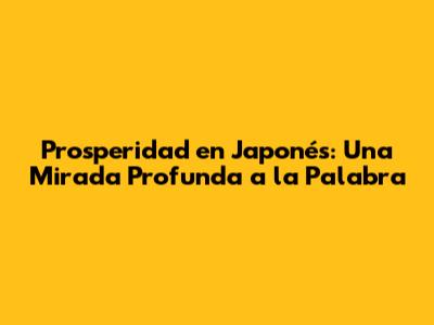 Prosperidad en Japonés: Una Mirada Profunda a la Palabra