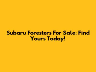 Subaru Foresters For Sale: Find Yours Today!