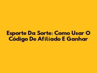 Esporte Da Sorte: Como Usar O Código De Afiliado E Ganhar