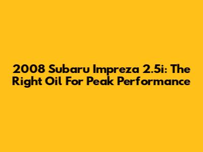 2008 Subaru Impreza 2.5i: The Right Oil For Peak Performance