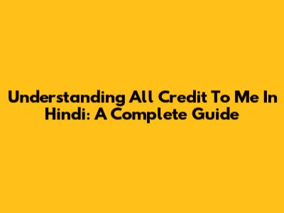 Understanding 'All Credit To Me' In Hindi: A Complete Guide