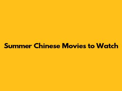 Summer Chinese Movies To Watch