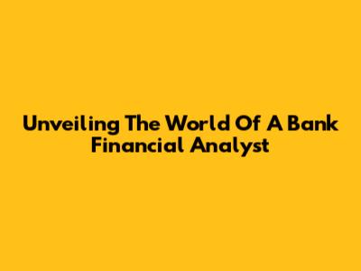 Unveiling The World Of A Bank Financial Analyst