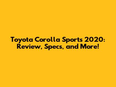 Toyota Corolla Sports 2020: Review, Specs, And More!