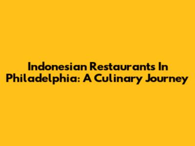 Indonesian Restaurants In Philadelphia: A Culinary Journey