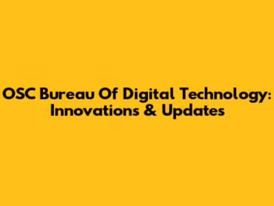 OSC Bureau Of Digital Technology: Innovations & Updates