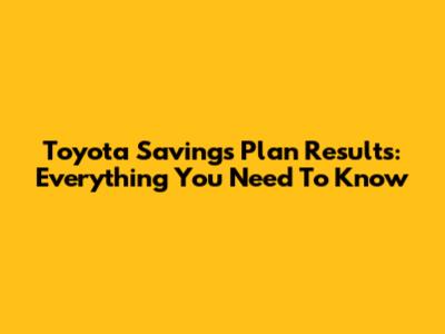 Toyota Savings Plan Results: Everything You Need To Know